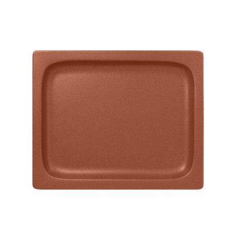 Neo Fusion Gastronorm Pan, 44 oz., 12-4/5" x 10-3/7" x 4/5", rectangular, flat, break resistant, lead free, oven/microwave/dishwasher safe, non-porous glaze, terra brown (3 each per case)