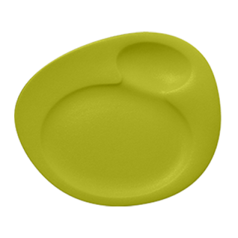 Neo Tonic Breakfast Plate, 9-7/16" x 7-7/8", free form, with (2) basins, fridge/freezer/oven/microwave/dishwasher safe, porcelain, kiki green (12 each per case)