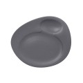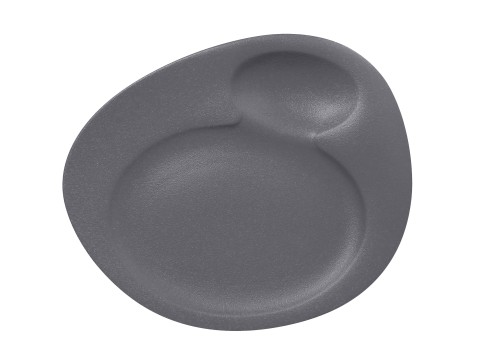 Neo Fusion Dinner Plate, 12-1/2" x 10-7/16" x 3/4"H, free form, with (2) basins, break resistant, lead free, oven/microwave/dishwasher safe, non-porous glaze, porcelain, stone gray (6 each per case)