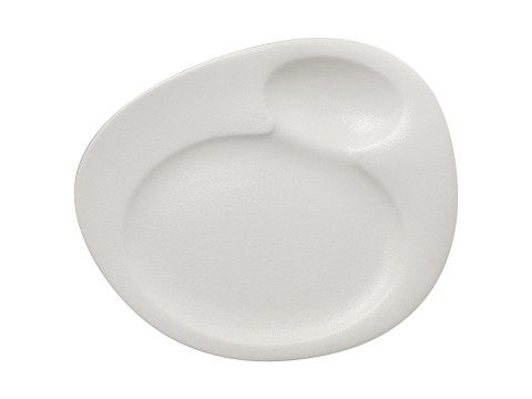 Neo Fusion Dinner Plate, 12-1/2" x 10-7/16" x 3/4"H, free form, with (2) basins, break resistant, lead free, oven/microwave/dishwasher safe, non-porous glaze, porcelain, sand white (6 each per case)