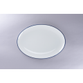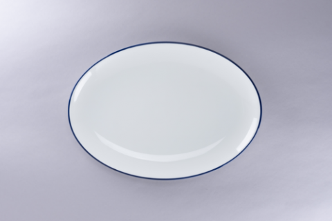 Oval Coupe Platter, 12.6"L x 9"W, round, porcelain, white with blue rim, Rimz