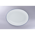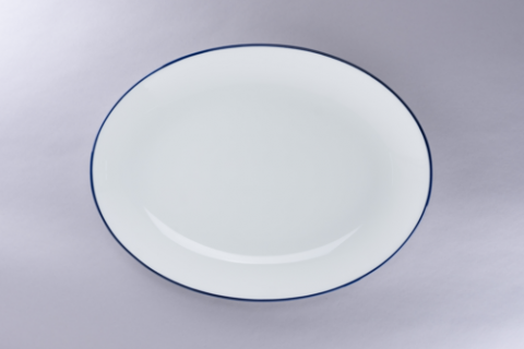 Oval Coupe Platter, 14.1"L x 10.67"W, round, porcelain, white with blue rim, Rimz