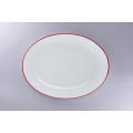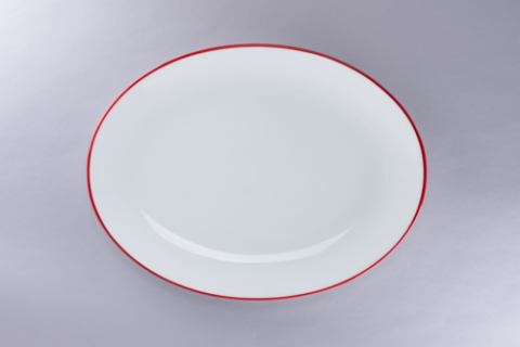 Oval Coupe Platter, 14.1"L x 10.67"W, round, porcelain, white with red rim, Rimz
