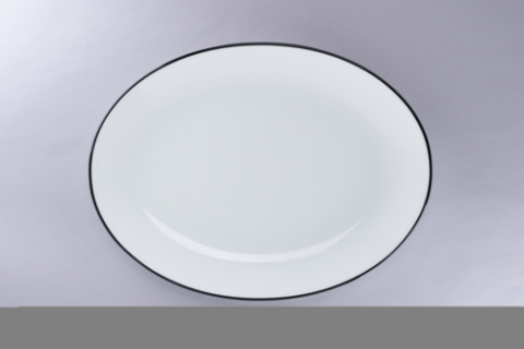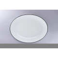 Oval Coupe Platter, 14.1"L x 10.67"W, round, porcelain, white with black rim, Rimz