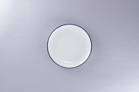 Flat Coupe Plate, 7.1" dia., round, porcelain, white with blue rim, Rimz (24 each per case)