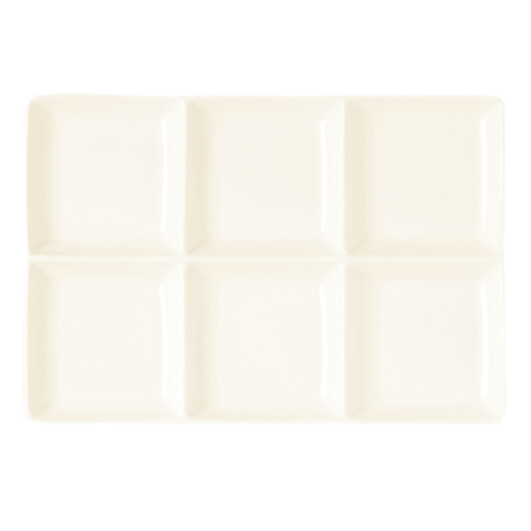 Mini Max Platter, 11" x 7-7/8" x 7/8"H, rectangular, (6) 1/2 oz. compartments, dishwasher & microwave safe, porcelain, white (6 each per case)