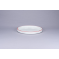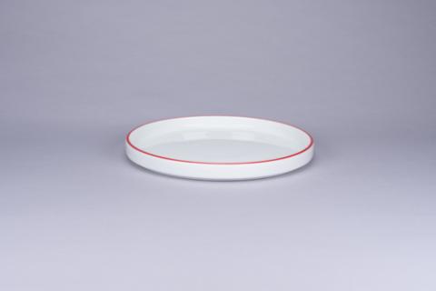 Stackable Flat Rimless Plate/Lid, 9.1" dia., round, porcelain, white with red rim, Rimz