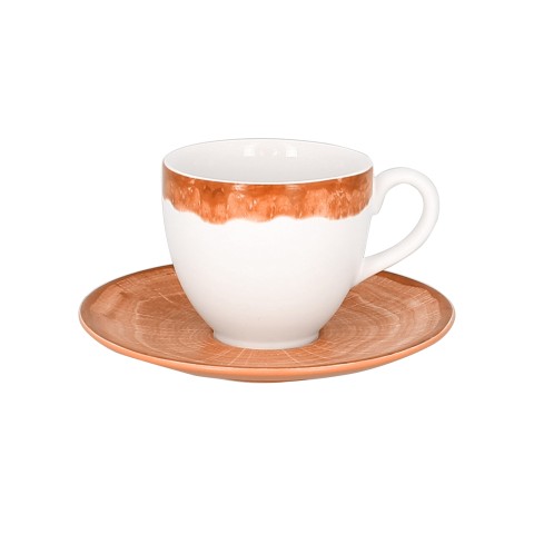 Wood Art Coffee Cup, 7-3/4 oz., non-stackable, break resistant, lead free, fridge/freezer/oven/microwave/dishwasher safe, non-porous glaze, porcelain, cedar orange (12 each per case)