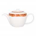 Wood Art Tea Pot, 13-1/2 oz., with lid, break resistant, lead free, fridge/freezer/oven/microwave/dishwasher safe, non-porous glaze, porcelain, cedar orange (4 each per case)