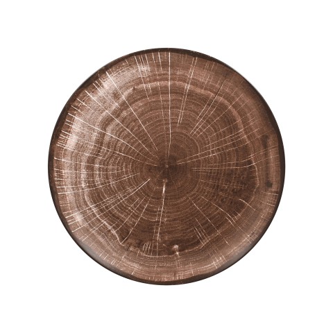 Wood Art Plate, 9-1/2" dia., round, flat, coupe, break resistant, lead free, fridge/freezer/oven/microwave/dishwasher safe, non-porous glaze, porcelain, oak brown (12 each per case)
