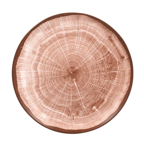 Wood Art Plate, 11-1/2" dia., round, flat, coupe, break resistant, lead free, fridge/freezer/oven/microwave/dishwasher safe, non-porous glaze, porcelain, walnut brown (12 each per case)