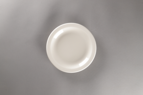 Plate, 7.4" dia., round, rolled edge, flat narrow rim, porcelain, Youngstown, American White (12 each per case)