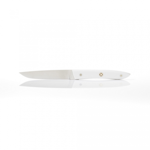 Perceval Adret Table Knife, high end and resistant steel blade, non serrated, krion handle, dishwasher safe, antibacterial, resistant to UV and fire, customization possible, white, Made in France, (SHIPS FROM FRANCE)