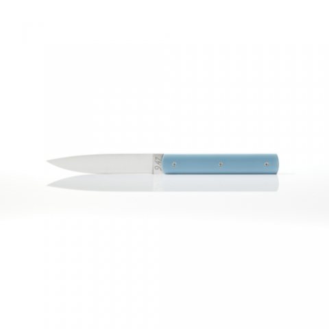 Perceval Table Knife 947, high end and resistant steel blade, non serrated, polyacetal handle, dishwasher safe, customization possible, celadon blue, Made in France, (SHIPS FROM FRANCE)