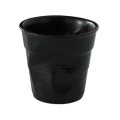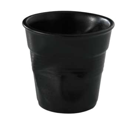 (RGO0118) Cappuccino Tumbler, 6-1/4 oz., 3-1/4" dia. x 3-1/4"H, crumpled, round, oven, microwave, freezer & dishwasher safe, porcelain, satin black, Froisses (US stocked item)