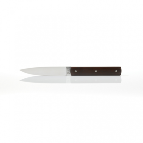 Perceval Table Knife 947, high end and resistant steel blade, non serrated, wood handle, customization possible, macassar ebony, Made in France, (SHIPS FROM FRANCE)