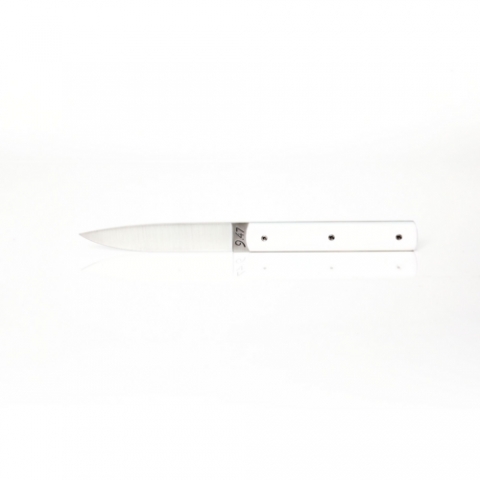 Perceval Table Knife 947, high end and resistant steel blade, non serrated, dishwasher safe, customization possible, polyacetal white handle, Made in France (SHIPS FROM FRANCE)