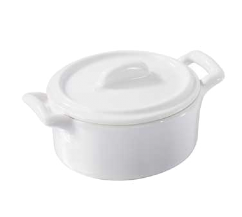(BC0108) Mini Cocotte, (SHIPS FROM FRANCE), 2-3/4 oz., 3" x 2-3/4" x 1-3/4"H, oval, with lid, handled, oven, microwave, freezer & dishwasher safe, glazed, porcelain, white, Belle Cuisine