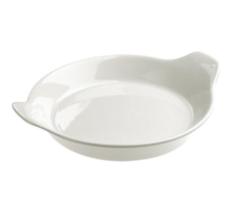 (D360) Dish, 7 oz., 6" dia. x 1-1/2"H, round, eared, safe for oven, microwave, freezer & dishwasher, glazed, porcelain, white, French Classics (US stocked item)