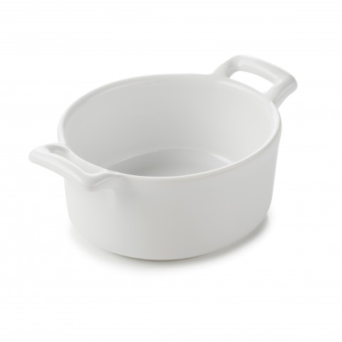 (BC0108CO-1) Mini Cocotte, (SHIPS FROM FRANCE), 2-3/4 oz., 3" x 2-3/4" x 1-1/2"H, oval, without lid, handled, oven, microwave, freezer & dishwasher safe, glazed, porcelain, white, Belle Cuisine