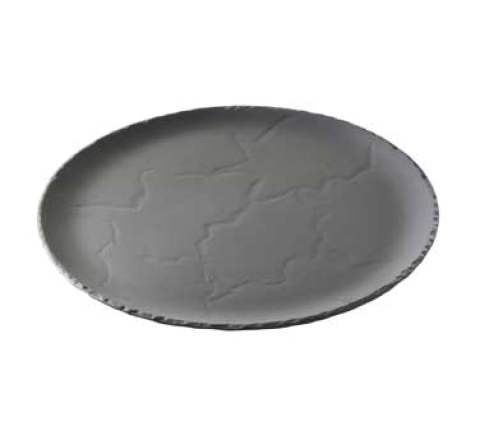 (BA1032) Plate, 12-1/2" dia. x 1/2"H, round, safe for oven, microwave, freezer & dishwasher, flake & scratch resistant, non-porous porcelain, matt slate style, Basalt (US stocked item)
