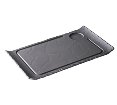(BA0439) Steak Plate, 15-1/2" x 9-1/2", with upturned ends, safe for oven, microwave, freezer, and dishwasher, flake & scratch resistant, non-porous porcelain, matt slate style, Basalt (US stocked item)