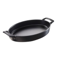 (BC0628N) Dish, 35-1/4 oz., 11" x 7-1/2" x 1-3/4"H, oval, shallow, handled, cast iron style, oven, microwave, freezer & dishwasher safe, porcelain, black, glazed finish, Belle Cuisine (US stocked item)