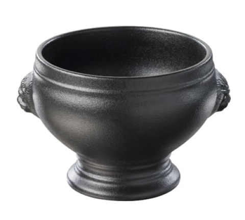 (E761N) Lion Head Soup Bowl, 12-1/4 oz., 4-1/4" dia. x 3-1/2"H, round, cast iron style, dishwasher safe, porcelain, black, French Classics (US stocked item)