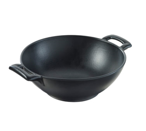 (BC3220N) Wok, 35-1/4 oz., 7-3/4" dia. x 2-3/4"H, round, handled, cast iron style, individual, oven, microwave, freezer & dishwasher safe, porcelain, black, glazed finish, Belle Cuisine (US stocked item)