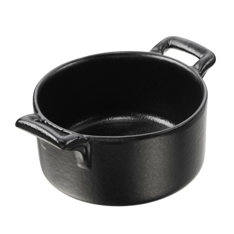(BC2107N) Ramekin, (SHIPS FROM FRANCE), 2-3/4 oz., 2-3/4" dia., 1-1/2" H, round, oven, microwave, freezer & dishwasher safe, glazed, porcelain, cast iron style black, Belle Cuisine