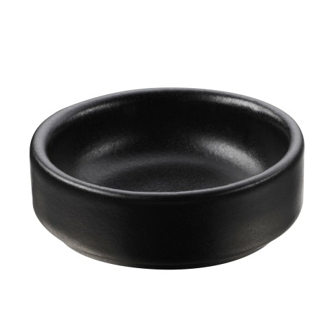 (CP1802) Ramekin Dish, (SHIPS FROM FRANCE), 3/4 oz., 2-1/2" dia. 3/4" H, round, small, shallow, safe for oven, microwave, freezer & dishwasher, glazed, porcelain, satin black, Basalt