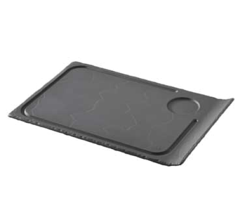 (BA1933) Steak Plate, 13" x 8-3/4", with upturned end, safe for oven, microwave, freezer, and dishwasher, flake & scratch resistant, non-porous porcelain, matt slate style, Basalt (US stocked item)