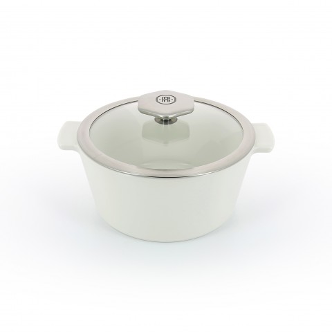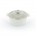 (RVLT2) Cocotte, (SHIPS FROM FRANCE), 53 oz., 7-1/2" dia. x 5-1/4"H, round, with glass lid, handled, induction ready, oven, freezer & dishwasher safe, microwave safe body, non-porous ceramic, white body, Revolution 2 (previously 646849)