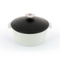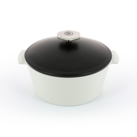 (RVLT2) Cocotte, (SHIPS FROM FRANCE), 84-3/4 oz., 9" dia. x 5-1/2"H, round, with satin black lid, handled, induction ready, oven, freezer & dishwasher safe, microwave safe body, non-porous ceramic, white body, Revolution 2 (previously 646901)