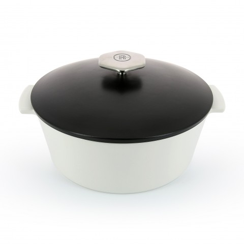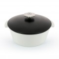 (RVLT2) Cocotte, 120 oz., 10-1/4" dia. x 5-3/4"H, round, with satin black lid, handled, induction ready, oven, freezer & dishwasher safe, microwave safe body, non-porous ceramic, white body, Revolution 2 (US stocked item) (previously 644271)