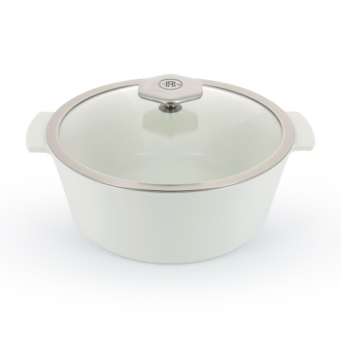 (RVLT2) Cocotte, (SHIPS FROM FRANCE), 120 oz., 10" dia. x 5-1/2"H, round, with glass lid, handled, induction ready, oven, freezer & dishwasher safe, microwave safe body, non-porous ceramic, white body, Revolution 2 (previously 646851)