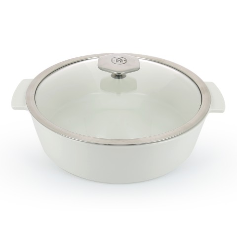 (RVLT2) Cocotte, (SHIPS FROM FRANCE), 127 oz., 11" dia. x 5"H, round, shallow, with glass lid, handled, induction ready, oven, freezer & dishwasher safe, microwave safe body, non-porous ceramic, white body, Revolution 2 (previously 646852)