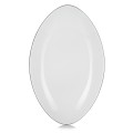 (EQ1234N-234) Plate, 13-3/4"L x 8-3/4"W x 1-1/2"H, oval, flat, oven, microwave, freezer & dishwasher safe, porcelain, white cumulus, Equinoxe (US stocked item)