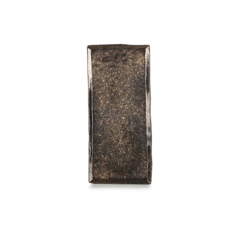 (SL1230N-152-2422) Plate, 11-3/4" x 5-1/4" x 3/4"H, rectangular, hand-made, porcelain, Solstice, cosmos gold, Made in France (US stocked item)