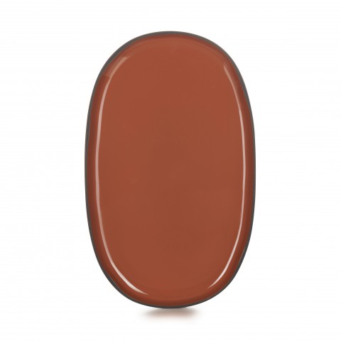(CO1335N-254) Service Plate, 14" x 8-1/2" x 1"H oval, oven, microwave, freezer & dishwasher safe, porcelain, cinnamon, Caractere (US stocked item)