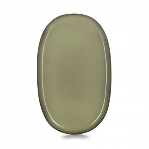 (CO1335N-255) Service Plate, 14" x 8-1/2" x 1"H oval, oven, microwave, freezer & dishwasher safe, porcelain, cardamom, Caractere (US stocked item)