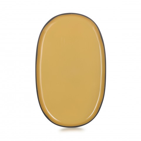 (CO1335N-257) Service Plate, 14" x 8-1/2" x 1"H oval, oven, microwave, freezer & dishwasher safe, porcelain, turmeric, Caractere (US stocked item)