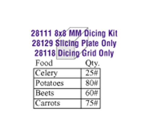 Dicing Kit, 8 x 8mm (5/16"), includes: slicing disc (28129) & dicing grid (28118)