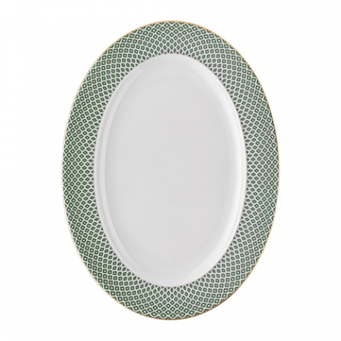 Platter, 13-1/4"L x 9-5/8"W x 1-1/8"H, oval, porcelain, Rosenthal, Francis Carreau Green, Made in Germany
