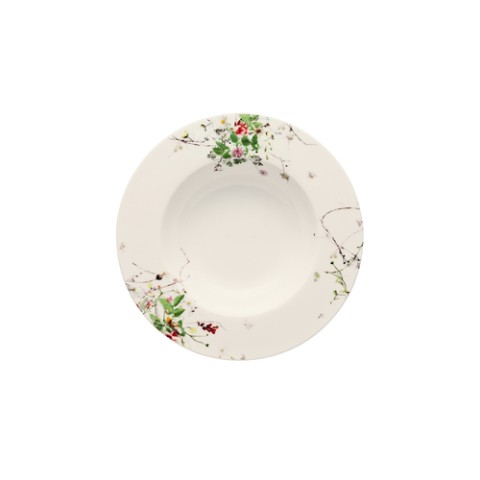 Soup Plate, 9" dia., 9"L x 9"W x 1-1/4"H, round, deep rim, scratch-resistant, microwave and dishwasher safe, bone china, white, with floral decoration, Rosenthal, Fleurs Sauvages