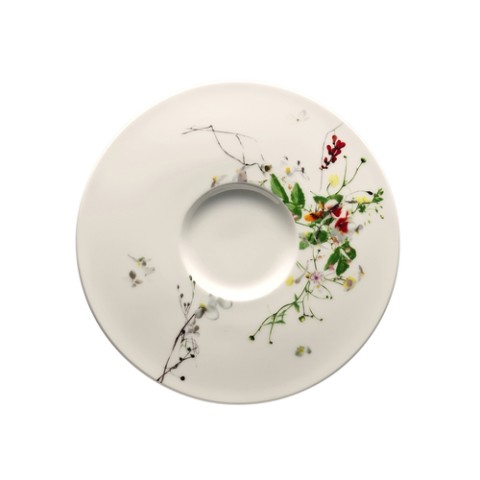 Saucer, 7-3/8" dia., 7-3/8"L x 7-3/8"W x 1/2"H, round, scratch-resistant, microwave and dishwasher safe, bone china, white, with floral decoration, Rosenthal, Fleurs Sauvages (fits 10530-405101-10422) (Special Order Item)