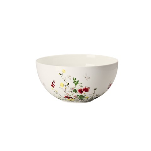 Vegetable Bowl, 84-1/2 oz., 9-1/4" dia., 9-1/4"L x 9-1/4"W x 4-3/8"H, round, scratch-resistant, microwave and dishwasher safe, bone china, white, with floral decoration, Rosenthal, Fleurs Sauvages