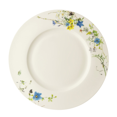Dinner Plate, 11" dia., 11"L x 11"W x 5/8"H, round, rim, scratch-resistant, microwave and dishwasher safe, bone china, white, with floral decoration, Rosenthal, Rosenthal, Brillance Fleurs des Alpes