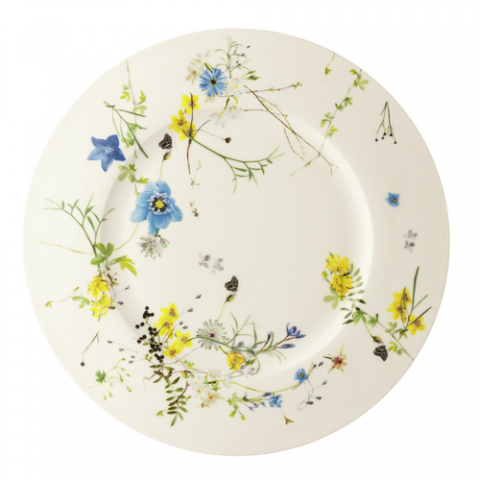 Service Plate, 13-1/8" dia., 13-1/8"L x 13-1/8"W x 5/8"H, round, rim, scratch-resistant, microwave and dishwasher safe, bone china, white, with floral decoration, Rosenthal, Rosenthal, Brillance Fleurs des Alpes