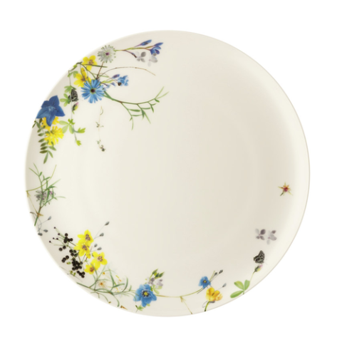 Dinner Plate, 10-3/4" dia., 10-3/4"L x 10-3/4"W x 3/4"H, round, coupe, flat, scratch-resistant, microwave and dishwasher safe, bone china, white, with floral decoration, Rosenthal, Rosenthal, Brillance Fleurs des Alpes